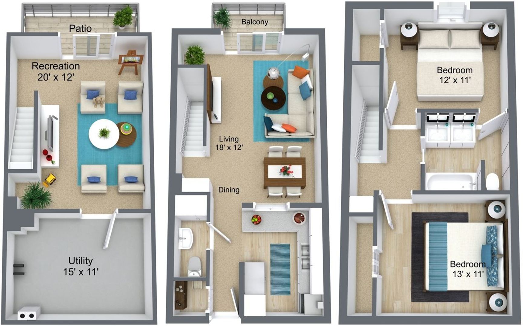 This spacious two-bedroom, one-and-half bathroom townhome offers ample living space. You can either spend some time cozying up in the living room or move downstairs to the finished basement. Or don’t stay inside at all and choose to spend time outdoors with not only a private balcony but also a private patio as well. Utilize the updated kitchen cabinets by showing off some of your cooking skills. This specific floorplan does offer washer/dryer hook-ups that are in the basement. Don’t miss out on calling this home!